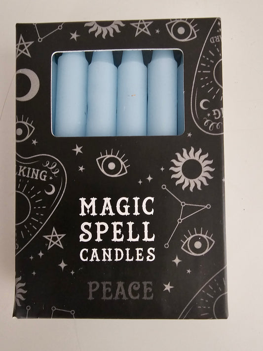 Pack of 12 Light Blue 'Peace' Spell Candles